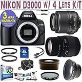 | ✚✚✚ NIKON D3000 w/ NIKON 18-55 VR LENS + SIGMA 70-300 DG MOTOR LENS + 2X LENS + .45X SUPER WIDE ANGLE LENS + 16 GIG MEMORY CARD + 3 YEAR CELLTIME WARRANTY