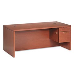 #* Thick 1 1/2" tops make a decidedly upscale impression. High-pressure laminate top is abrasion- and stain-resistant. Drawers operate on ball bearing suspensions; file drawer extends fully and accommodates letter or legal size hanging files, box drawer extends three-quarters. HON "One Key" core removable lock. Full-height modesty panel for privacy. Two worksurface grommets for easy cable management. Color: Bourbon Cherry; Pedestal Count: 1; Top Shape: Rectangular.
