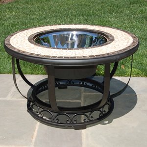 Alfresco Home Umbria Mosaic Fire Pit and Beverage Cooler Table, 36-Inch?At the core of Alfresco Home is the timeless elegance and superior craftsmanship of the Mediterranean-inspired Marble Mosaic Collections. Utilizing a variety of natural stone marble, travertine, and slate, the distinctive mosaic dining and accent pieces complement a wide range of indoor and outdoor settings. The individuality of each hand-cut and polished tile lends the mosaic collections to natural variations as is evidenced by the unique color, texture, and natural appearance to every individual unit. Constructed using industrial adhesives for ultimate durability, the mosaic table tops have been field tested with excellent durability results for over-wintering. Hand-set tiles in an iron support frame are grouted with resilient yet flexible adhesive compounds and speak to the quality engineering of what becomes a truly artisan creation. Table tops are finished and sealed with an industrial grade sealant for superior protection.